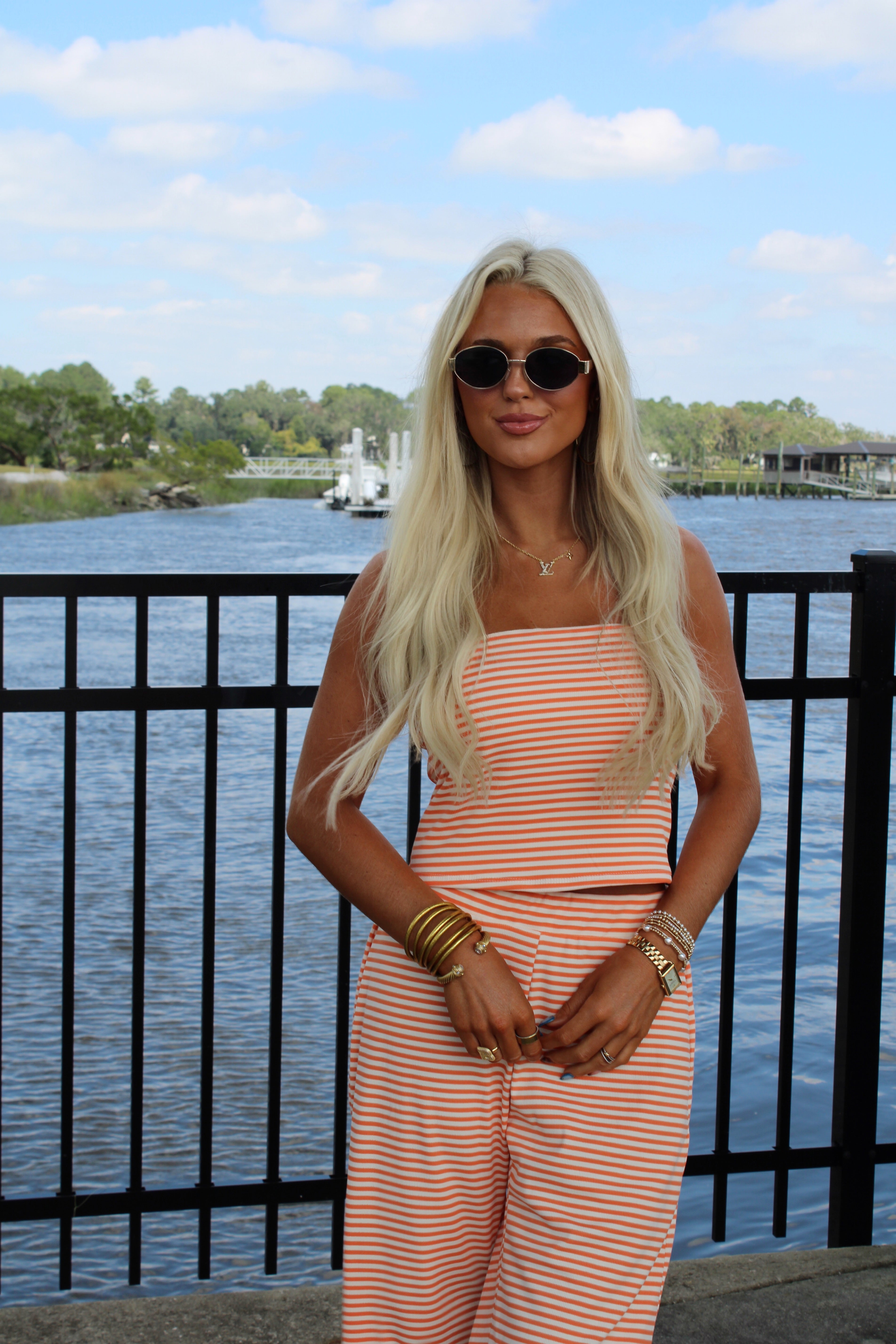 Our Henley Stripe Lounge set is the perfect fall transition piece! The strapless top can be worn on warmer days or throw on a mockneck when it gets chilly outside! The elastic pants make for a comfortable but stylish outfit choice!