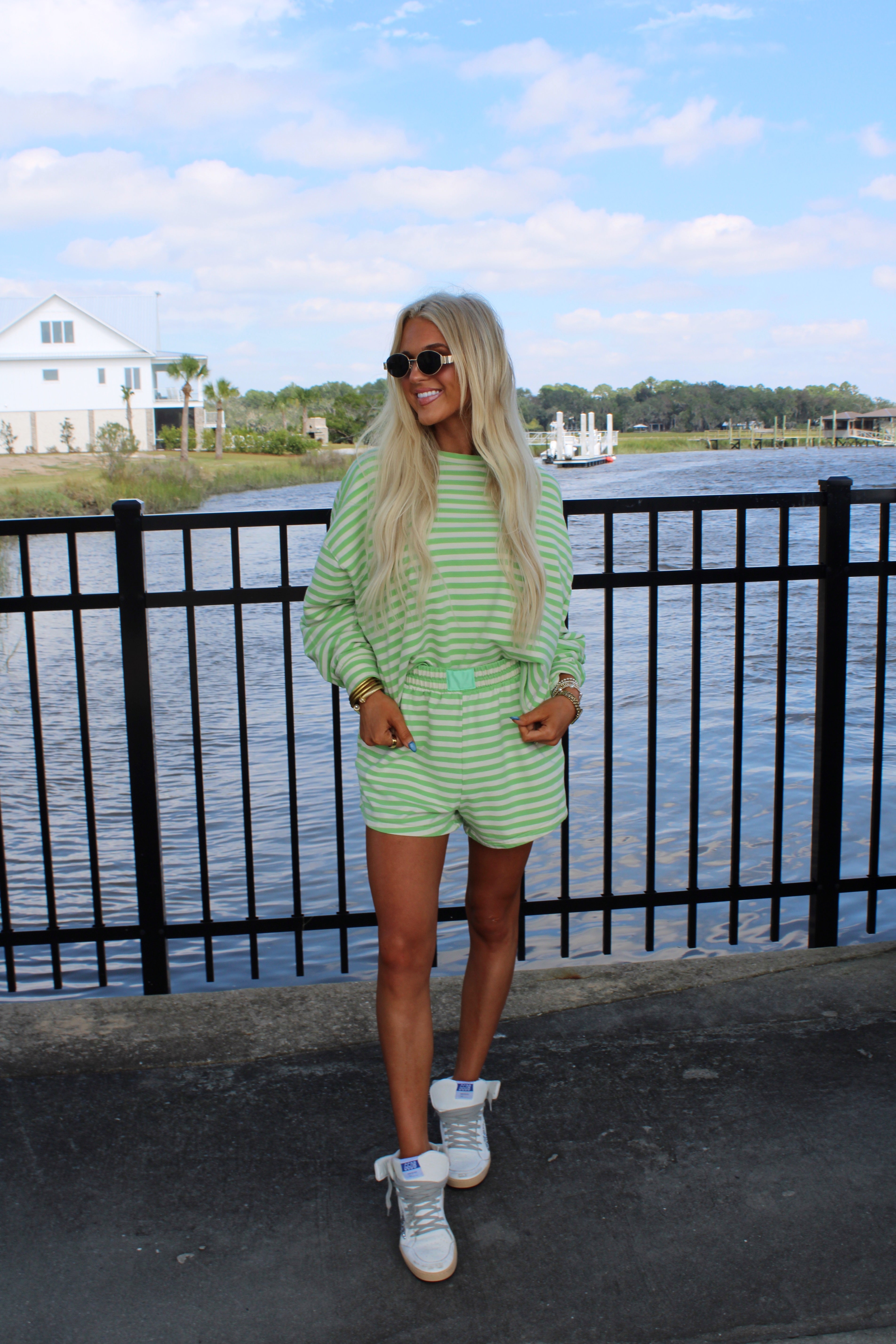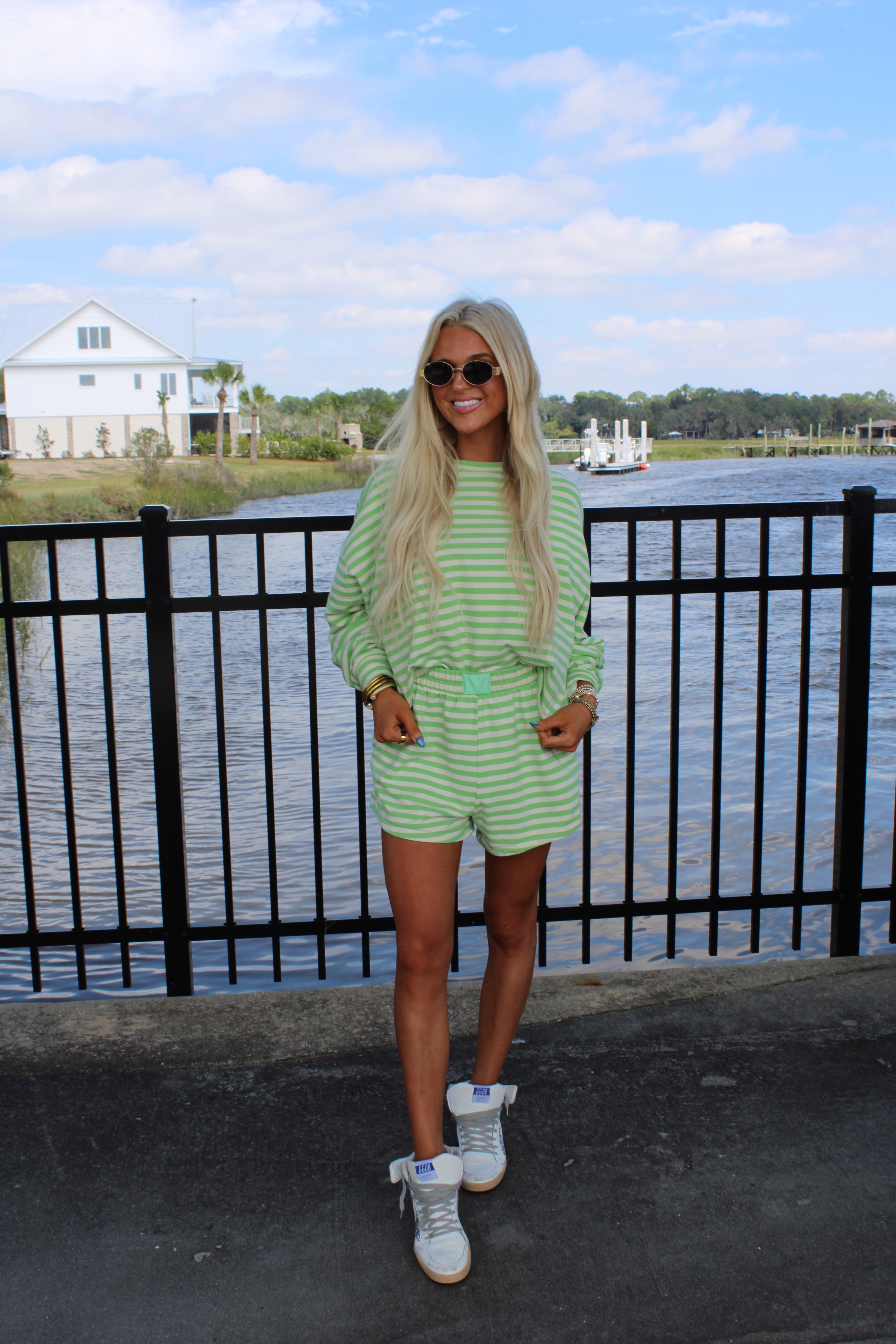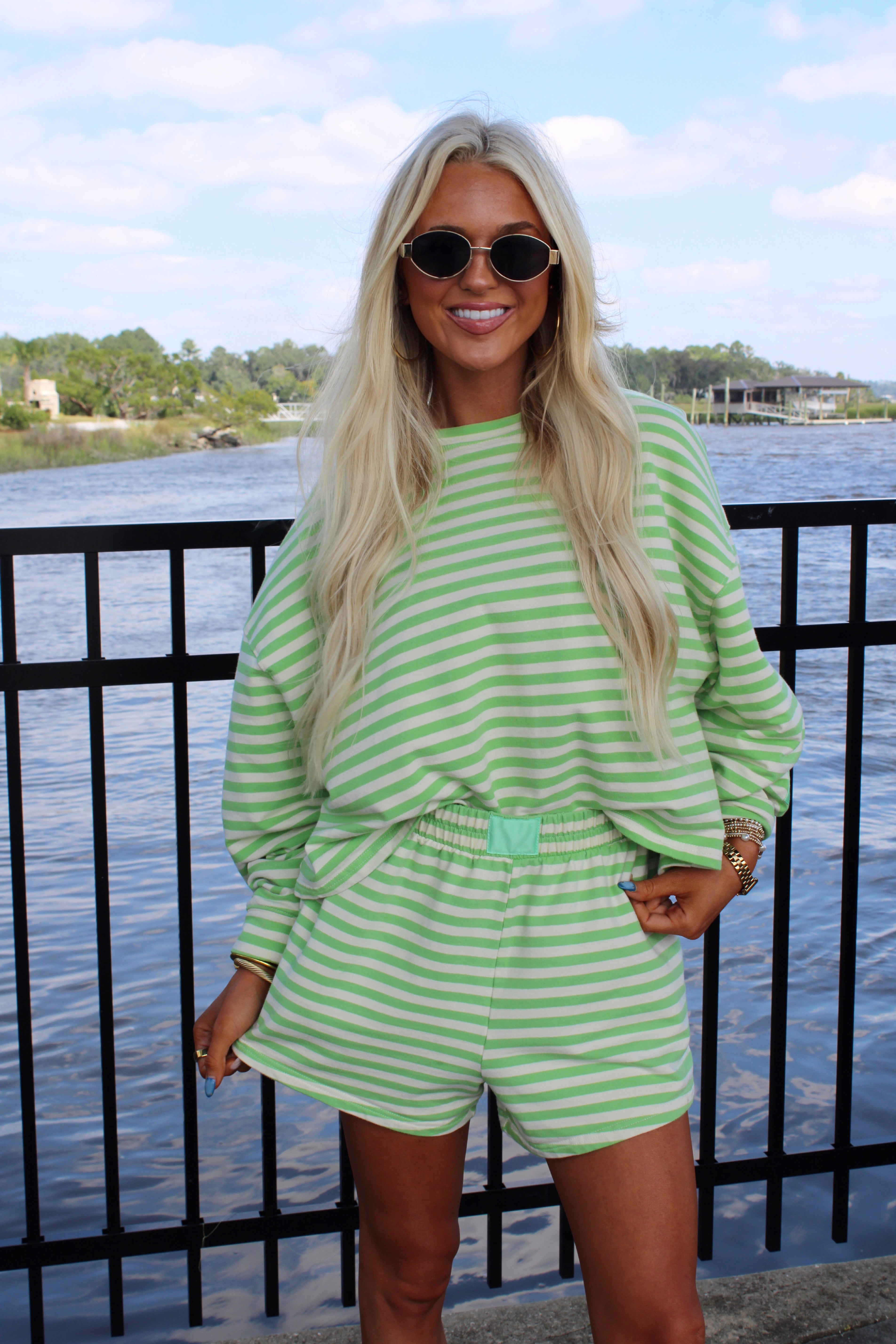 Our Silva Stripe set is so on trend for the fall! The oversized shirt and elastic waist shorts make for a comfy but stylish fit!