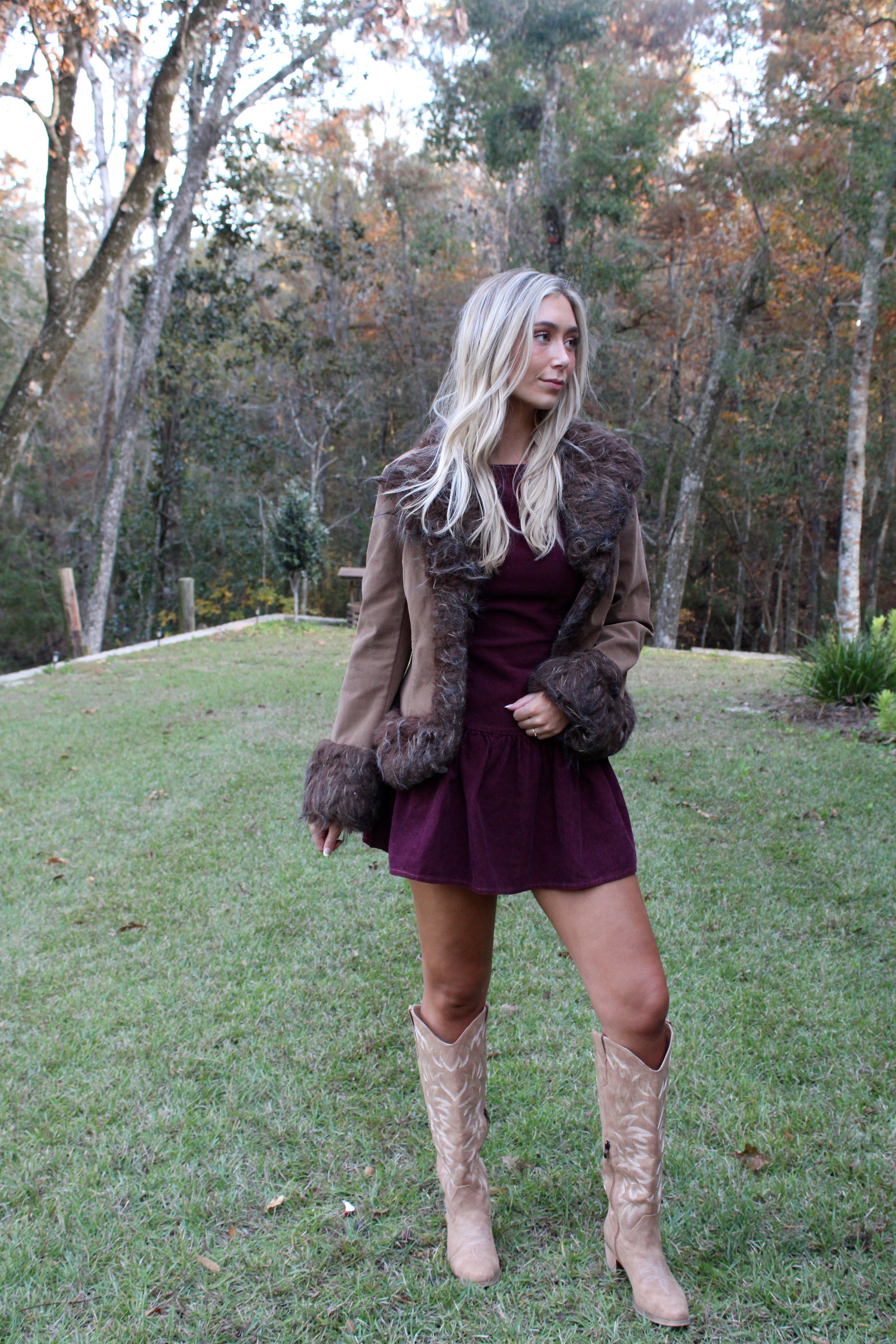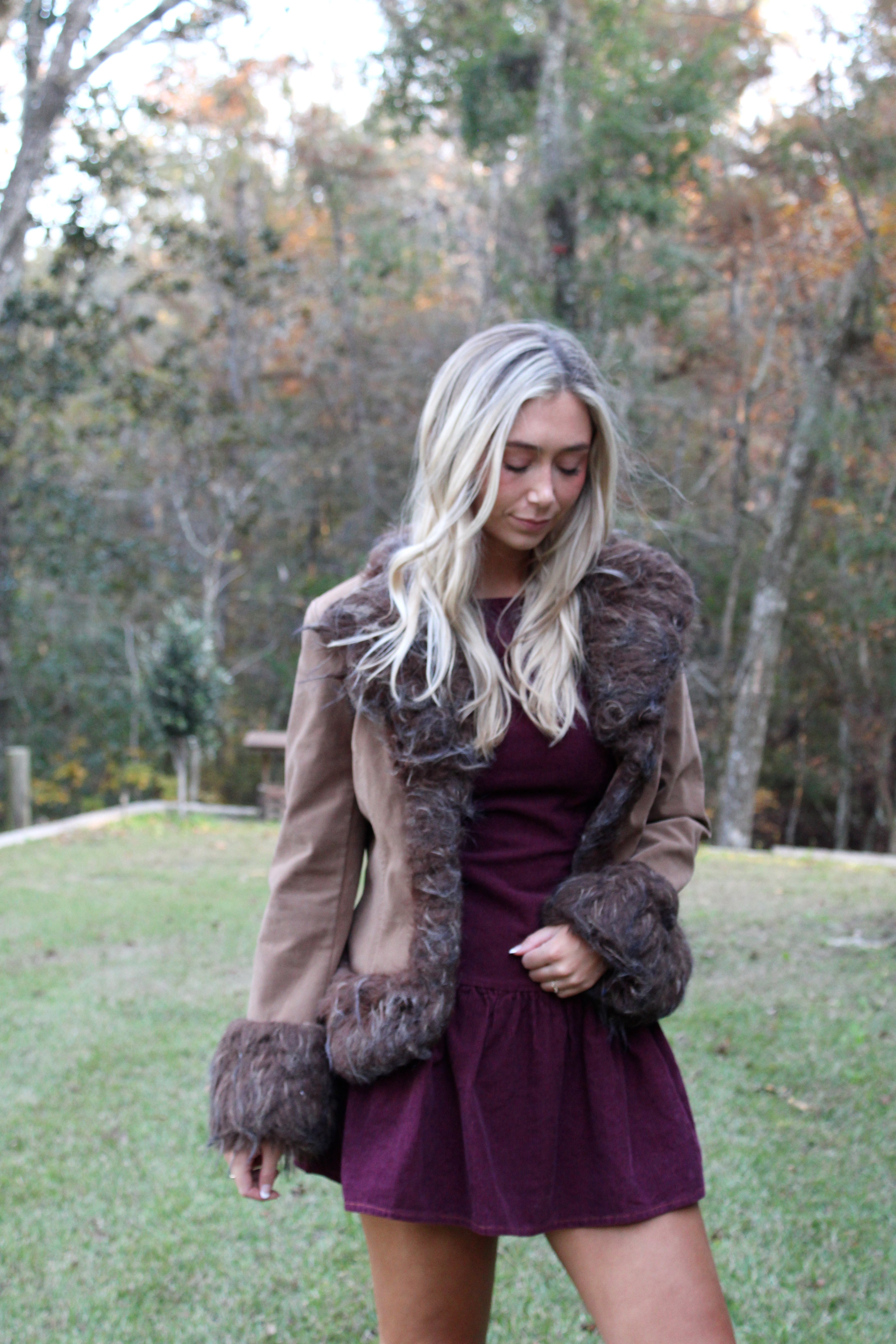 Suede Faux Fur Trim Coat